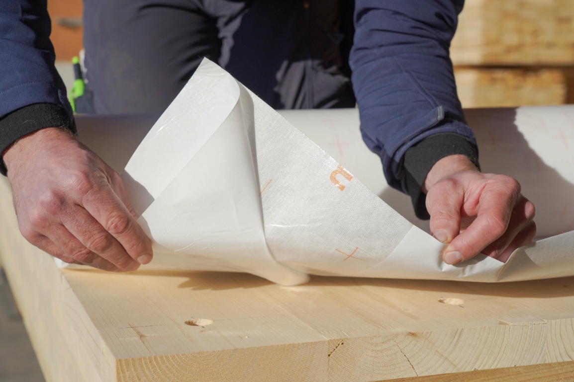 cамоклеящаяся диффузионная мембрана/защитный слой для деревянного домостроения, с монолитным функциональным слоем из TPU, Sd=0,18 м